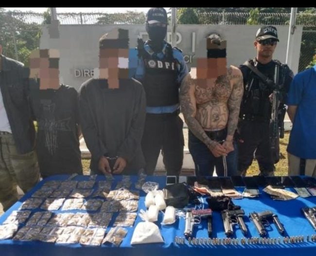 En el marco del cumplimiento de la ejecución del PCM-01-2023, la Dirección Policial de Investigaciónes (DPI) y la Dirección Nacional de Fuerzas Especiales (DNFE) ubican y detienen de manera flagrante a siete supuestos miembros activos de la Mara Salvatrucha (MS-13), en poder supuesta droga y armas de fuego.
