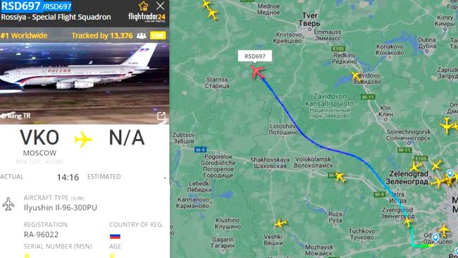 Durante este sábado numerosos informes se han reportando de que el avión presidencial de Putin despegó del aeropuerto Vnukovo de Moscú a las 2:16 pm hora de Rusia y luego se dirigió hacia el noroeste. Según los datos del sitio web de rastreo FlightRadar, el avión llegó al área de Tver -a unos 180 km de Moscú y donde tiene residencia Putin- antes de desaparecer del sistema. No ha sido posible confirmar si Putin estaba en el avión.