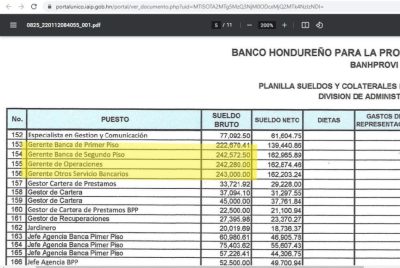 Es oportuno mencionar que dentro de Banhprovi también existen casi 30 empleados que perciben una retribución mensual de entre L100,000.00 y L150,000.00; siendo esta entidad una de las que mejor paga en el territorio nacional.