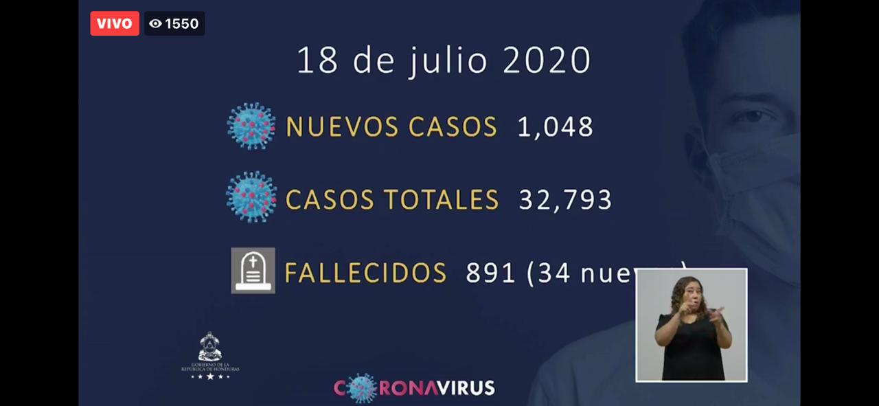 El Sistema Nacional de Gestión de Riesgos (SINAGER), informó mediante Cadena Nacional que el número de infectados por Covid-19 en Honduras es de 32, 793 Esto, ya que hubo 1,048 nuevos casos de coronavirus en este día.