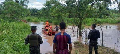 Las tripulaciones y equipos de rescate acuático realizan primeras evacuaciones preventivas en sector de Aldea Las Cuchillas, donde han sido trasladados 5 adultos y 7 menores, los cuales fueron transportados hacia albergue ubicado en Escuela Álvaro Contreras en Aldea Brisas de La Libertad.
