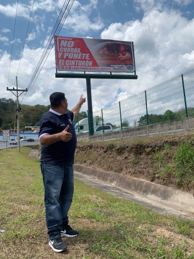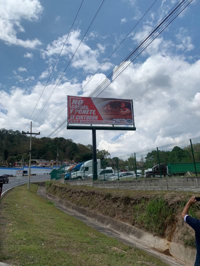 Si usted se desplaza por la carretera del norte a la altura del desvío de San Matias, encontrará esta publicadad para que sea responsable y maneje con mucha precaución, ya que la velocidad y el no usar cinturón podría ser fatal si tiene algún percance en carretera.