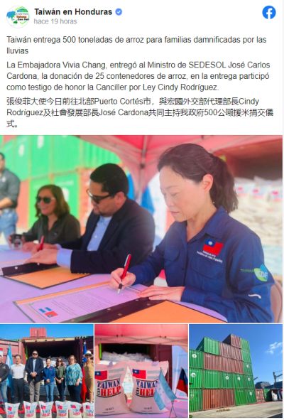 Cabe mencionar que, con este apoyo el gobierno de la República de China (Taiwán) reitera su firme compromiso y solidaridad con Honduras, dándole una mano a los hermanos catrachos más necesitados y afectados a través de las acciones concretas.