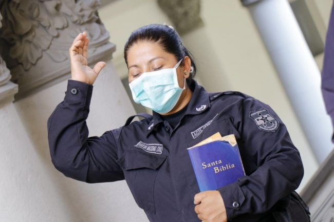 El Salvador: La Policía Nacional Civil (PNC) compartió este domingo, las emotivas fotografías donde aparecen elementos policiales orando u clamando a Dios por la salud y protección de los salvadoreños.