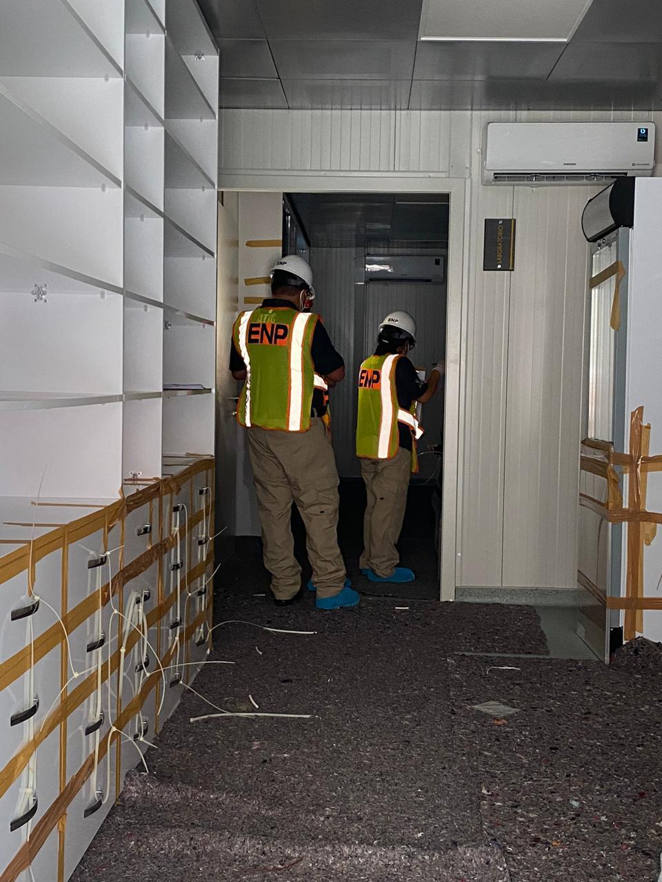 La Administración Aduanera de Honduras a través del personal aduanero instalado en Puerto Cortés junto al Ministerio Público (MP), Agencia Técnica de Investigación Criminal (ATIC) y el Consejo Nacional Anticorrupción (CNA) continúan este día con la inspección de los contenedores que integran los módulos de los hospitales móviles que serán instalados en las ciudades de San Pedro Sula y Tegucigalpa para la atención de la COVID-19.