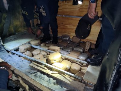 Choluteca. La Policía Nacional en una operación de impacto reporta el decomiso de una fuerte cantidad de paquetes con supuesta marihuana que iba a bordo de un vehículo tipo camión.