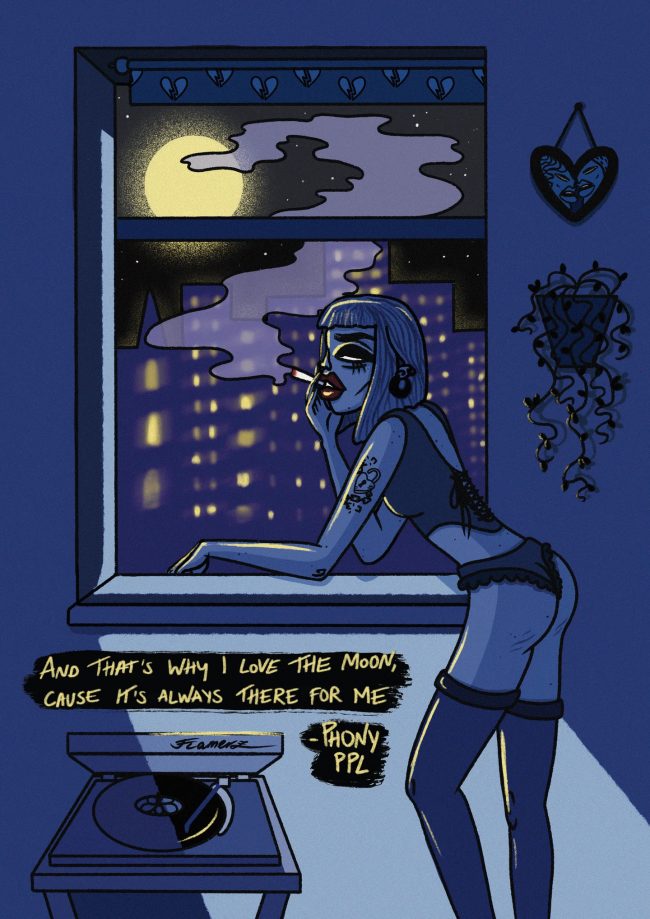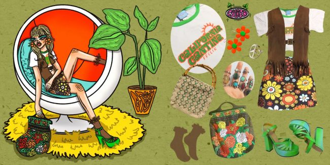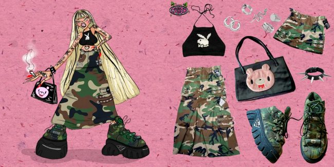 Diferentes temas surgen en su trabajo, y en su mayoría tienden a orbitar alrededor de las mujeres, la moda y la naturaleza. «Creo que mi arte es una representación de mis intereses y pensamientos», dice. “Por ejemplo, en el último año me ha gustado mucho la moda sostenible y he comprado ropa de segunda mano en Depop, por lo que decidí hacer una pequeña serie en la que encuentro piezas de ropa en su aplicación, creo un outfit con la ropa y luego las ilustro todas juntas como una atuendo.» Es una idea refrescante e innovadora, que distingue a los canales de redes sociales de Denize del resto. «Quiero mostrarle a la gente que se puede reducir la huella medioambiental y seguir teniendo piezas de vestuario increíbles».