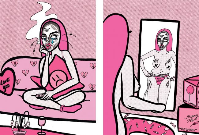 Denize, aunque ahora es ilustradora y creadora de contenido, nunca había planeado que las cosas salieran de esta manera. “Originalmente planeé convertirme en estilista y seguir la ruta de la moda”, comentó. «Pero cuando estudiaba arte y diseño en la Universidad de las Artes Creativas, pude descubrir muchos caminos diferentes en el mundo del arte y la ilustración fue uno de ellos», dice, señalando a su tutor Jake Rickwood por ayudarla a perfeccionar su personalidad. estilo y expresión artística.