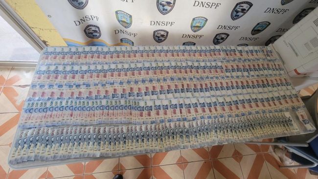 Según el reporte policial, mediante un registro personal y a sus pertenencias se le encontró la cantidad de 200,000 pesos mexicanos (250 mil lempiras), por lo que no pudo justificar su procedencia.