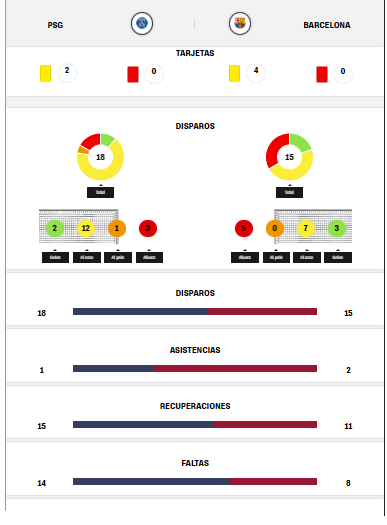 El FC Barcelona tuvo más el control de la pelota y en la primera parte lució más como un equipo que juega de local y no de visitante. Claro ejemplo de eso fue que Donnarumma tuvo más trabajo que ter Stegen, el portero del conjunto catalán, y Kylian Mbappé no generó peligro.