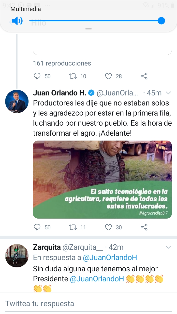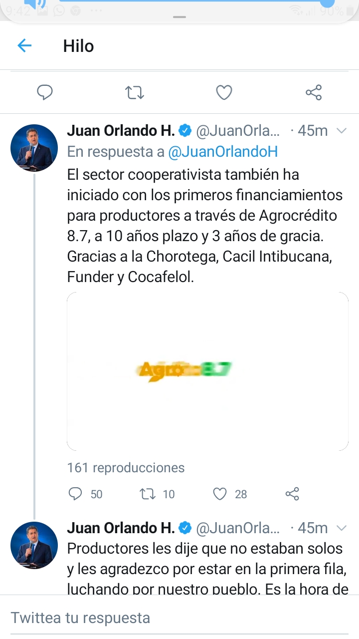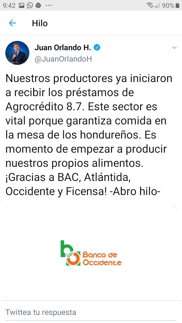 En su cuenta oficial de twitter, el mandatario aprovechó para agradecer la labor que realizan los productores para garantizar la comida en la mesa de todos los hondureños.