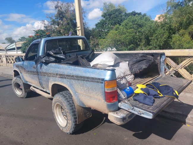 Al momento que los funcionarios de la Dirección Nacional de Prevención y Seguridad Comunitaria (DNPSC), y la Dirección Nacional de Vialidad y Transporte (DNVT), lo requirieron y registraron, encontraron que transportaba un saco rojo y dentro de el más de 50 paquetes con un aproximado de dos libras de hierba seca, supuesta marihuana.