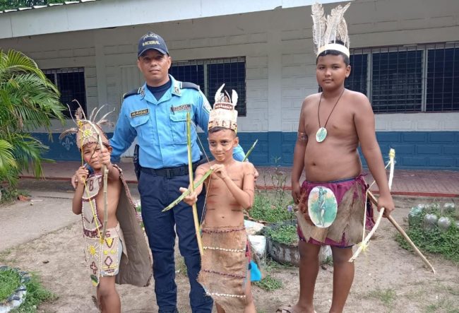 Autoridades de la Unidad Metropolitana de Prevención-18 (UMEP-18), presta especial atención de seguridad a un centro educativo en conmemora al Día del Indio Lempira en honor al héroe nacional lenca el Cacique Lempira.