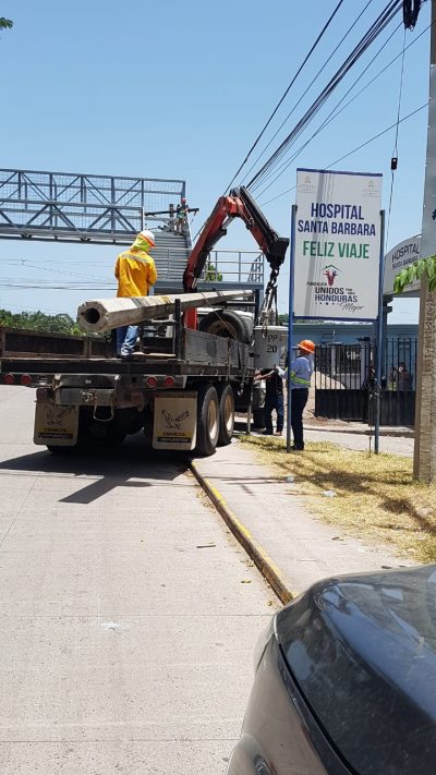 Cabe señalar que la ENEE suministró la estructura de concreto de 35 pies y la cruceta e igualmente movilizó desde San Pedro Sula la grúa especial para realizar dicho trabajo, informó Jerson Caballero, jefe de la Oficina Regional de la ENEE en Santa Bárbara.