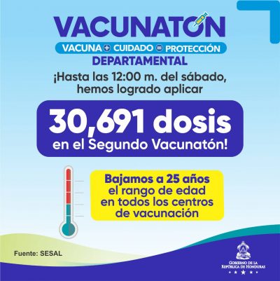 Tegucigalpa. El Vacunatón que se desarrolla con éxito en siete departamentos del país contabilizó hasta el mediodía de este sábado 30.691 personas inmunizadas, según datos de la Secretaría de Salud.