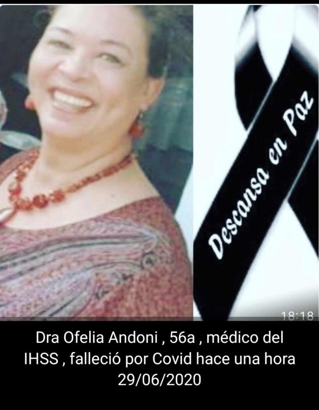 Entre tanto, el jefe de la Sala de Emergencia del IHSS, César Henríquez, dijo que «era una doctora muy reconocida y querida de la ciudad de Choluteca. Tenía de estar con nosotros aproximadamente semana y media o dos semanas».