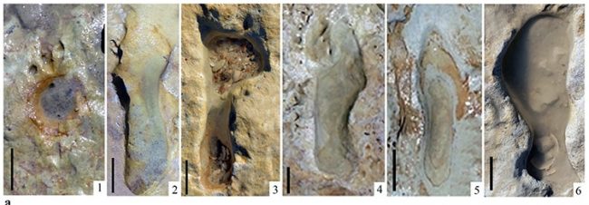 De las 87 huellas fósiles descubiertas, 31 están completas longitudinalmente y miden entre 14 y 17.5 centímetros de longitud. Los expertos han clasificado las huellas de la siguiente manera: 11 huellas infantiles, 25 huellas de adultos (5 de ellas femeninas y 14 masculinas), además de 6 individuos de sexo no identificado. En cuanto a la estatura, se calcula que la mayoría de los integrantes adultos tenía entre 1,3 y 1,5 metros de estatura.