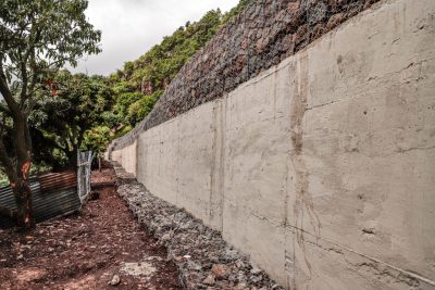 Además, como parte del proyecto, se completó la obra de contramedida para deslizamientos en la colonia Campo Cielo, con una inversión de 204,324 dólares, donde se construyeron perforaciones de drenaje horizontal, cunetas, canales, muros de contención y muro de gaviones.