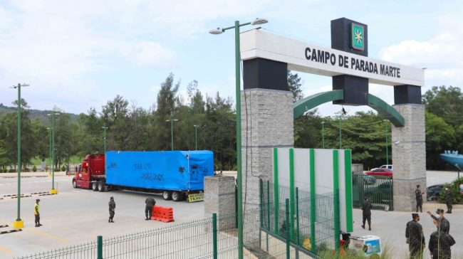Los contenedores salieron esta mañana desde la 105 Brigada de Infantería, con sede en San Pedro Sula, y durante el trayecto hacia Tegucigalpa han sido fuertemente custodiados por miembros de las Fuerzas Armadas, Policía Nacional y la Comisión Permanente de Contingencias (Copeco).