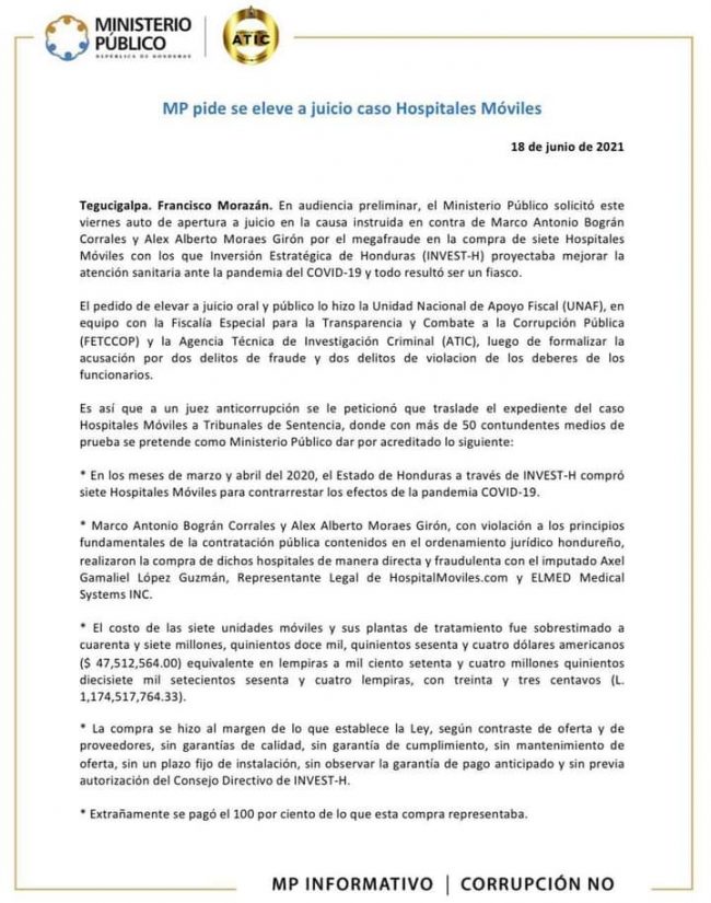 #MP pide se eleve a juicio caso Hospitales Móviles