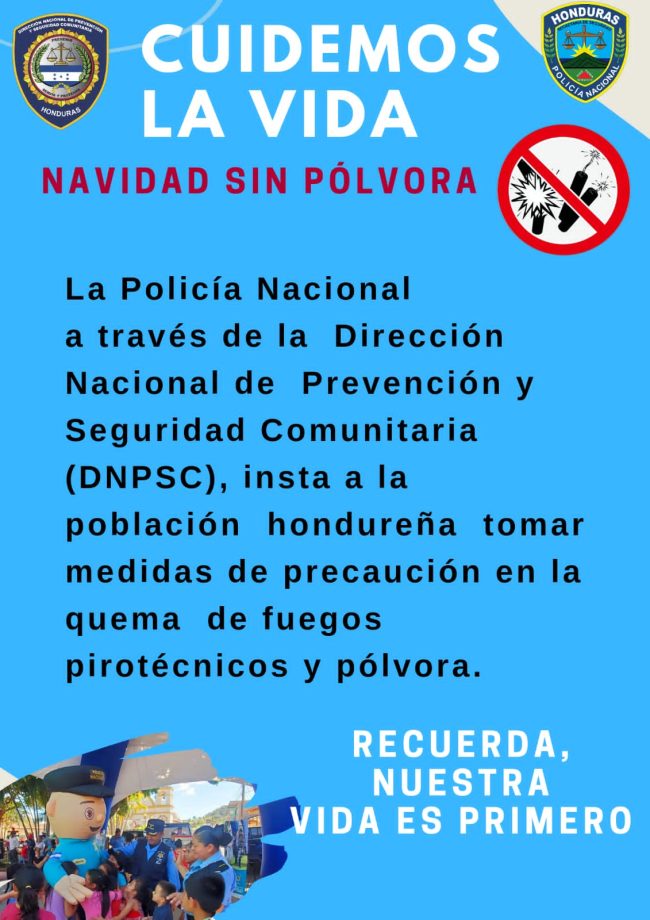 Por lo antes detallado, las autoridades policiales exhortan a la población a prevenir hechos lamentables producto de la quema indeterminada de pólvora como medida de prevención y en el marco de la campaña «Policía y Comunidad Juntos en Esta Navidad».