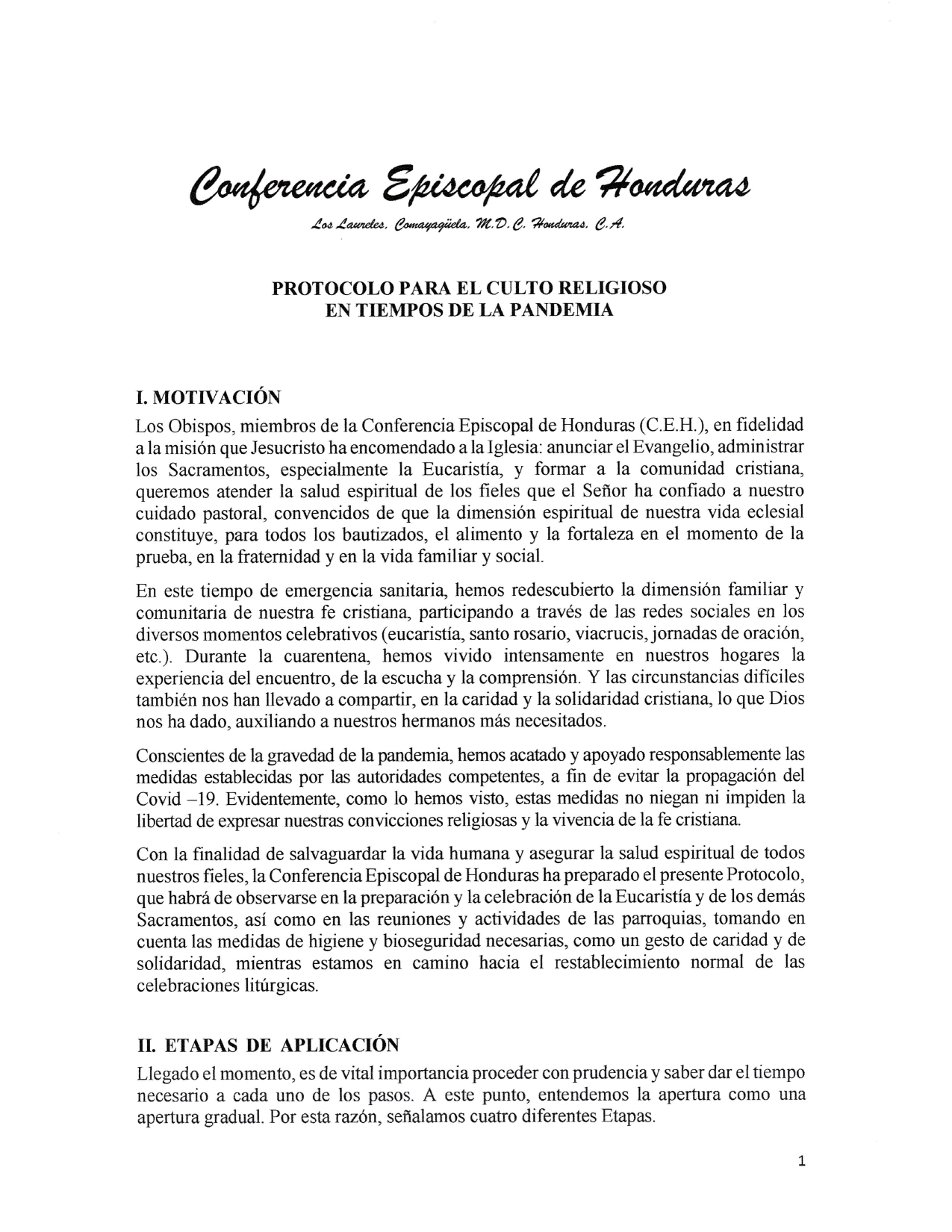 El portavoz de la Conferencia Episcopal de Honduras, Juan José Reyes dijo que en la Iglesia Católica se han preparado por su cuenta para la reapertura de los templos con los debidos protocolos.