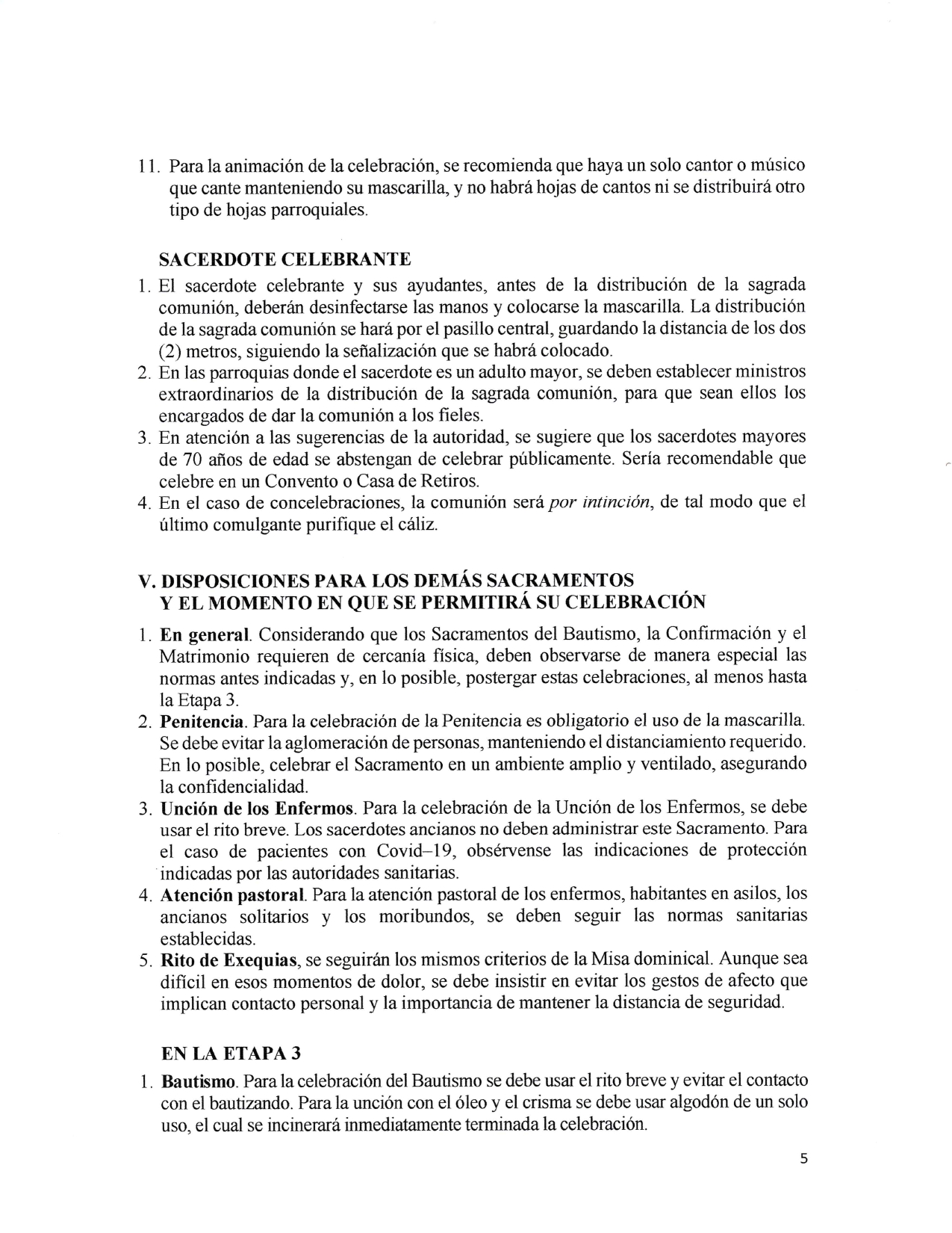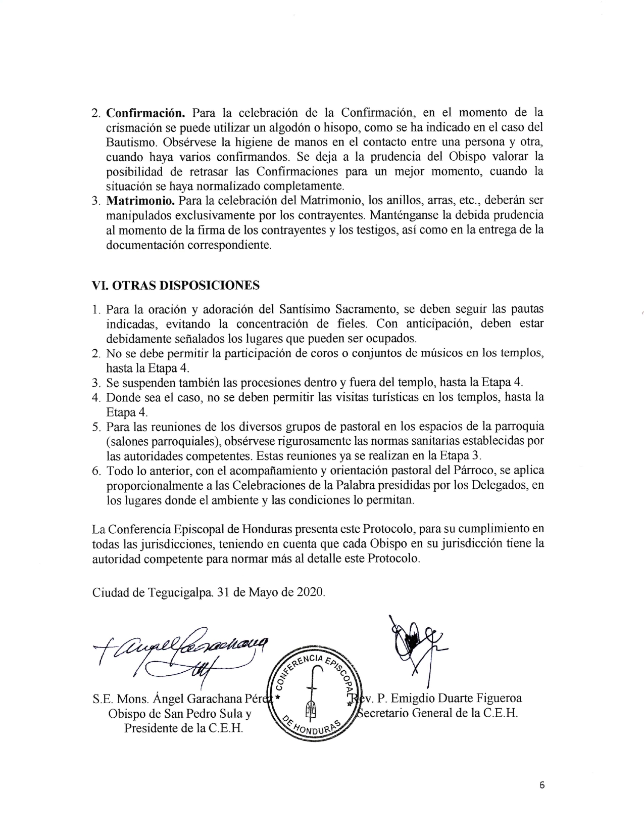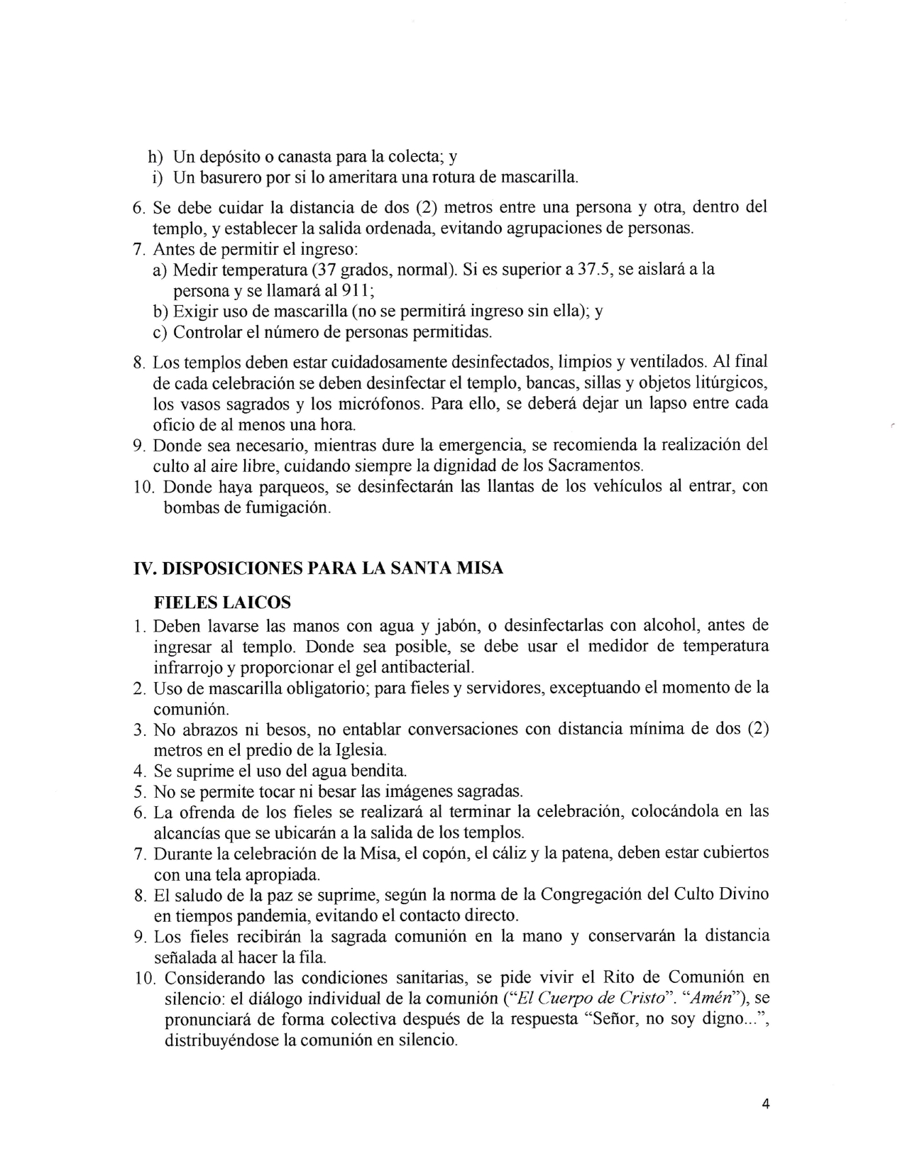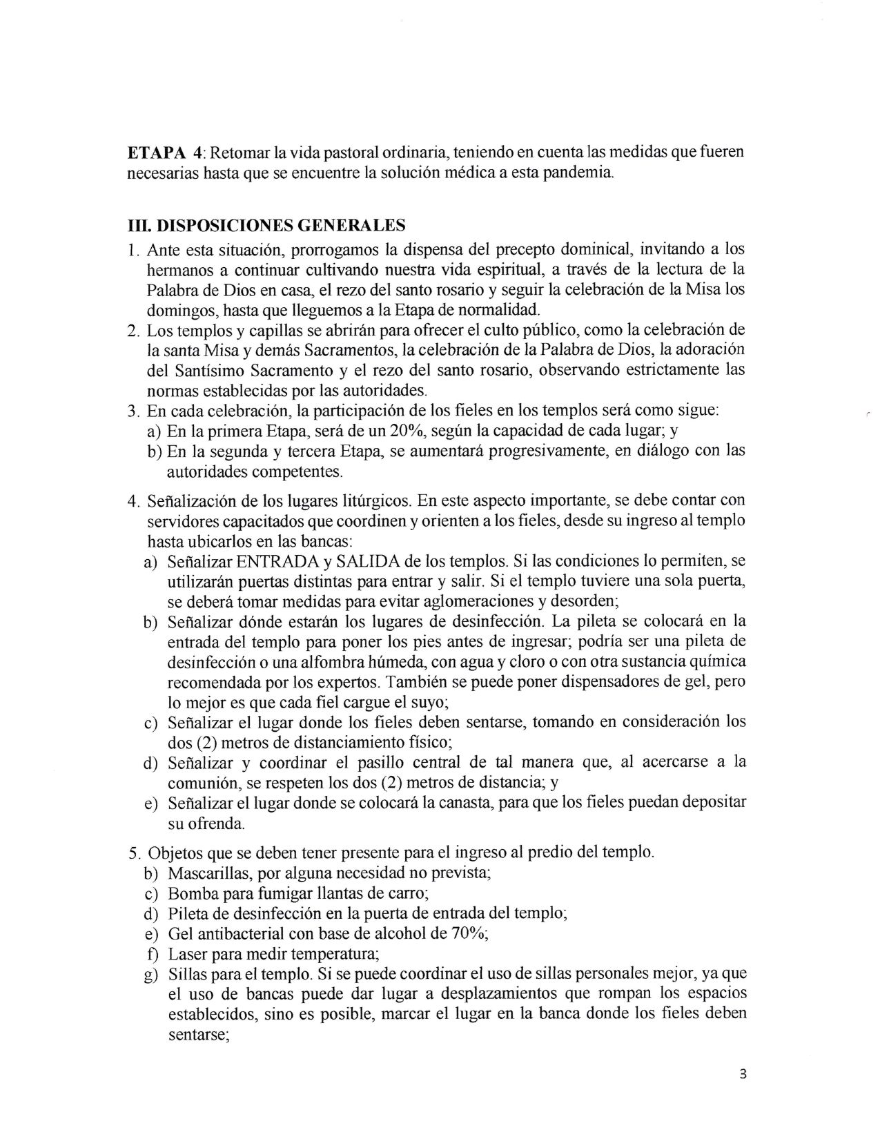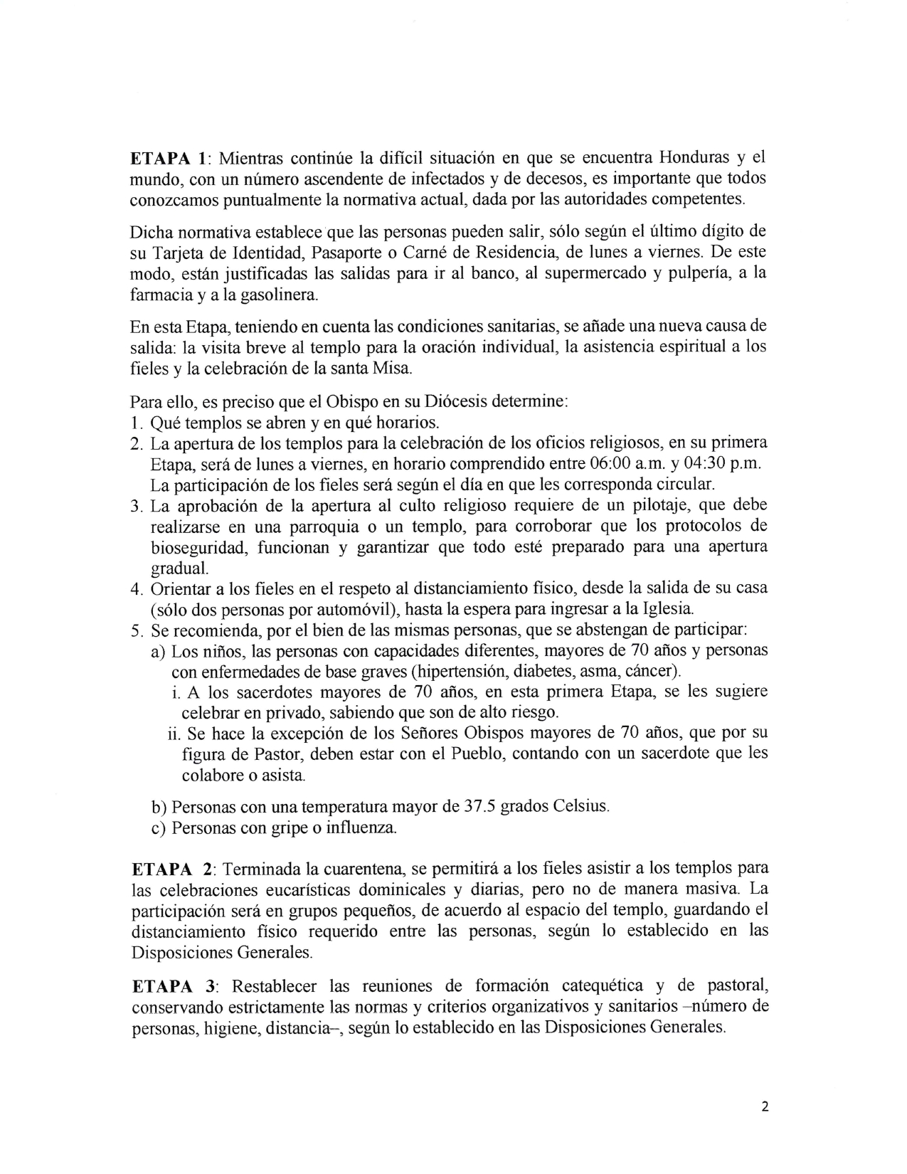 También se ha incluido el 20 por ciento de la capacidad del templo como aforo para cada reunión y luego las normas que tienen que ver con el distanciamiento social.