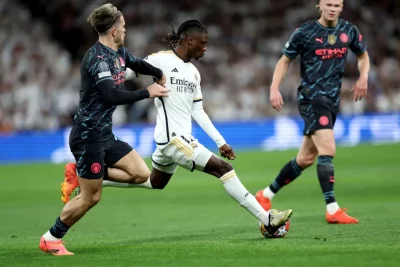 El partido de ida de los cuartos de final comenzó con mucha intensidad y malas noticias para el conjunto blanco. Al primer minuto Aurelién Tchouaméni recibió la tarjeta amarilla por una falta que cometida a Jack Grealish. Tan solo un minuto después, Bernardo Silva sorprendió al arquero Andriy Lunin en el cobro de tiro libre y su disparo raso abrió el marcador del partido.