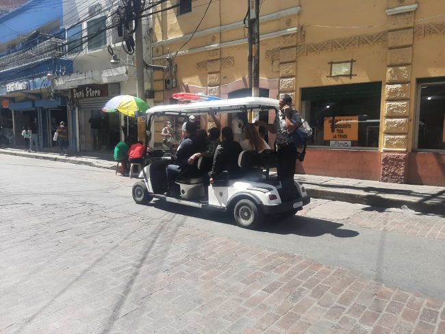 Es por ello que la Policía Nacional implemento desde tempranas horas un servicio de vehículos para recorridos de distancias cortas y por medio de ellos los agentes policiales están trasladando a las personas desde el Parque Central hasta el puente Mallol.