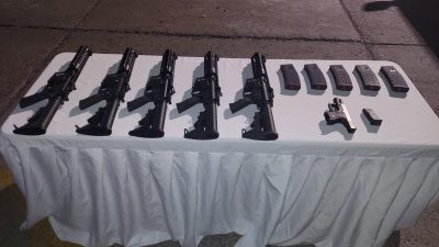 El detenido es un hombre de 38 años, de ocupación guardaespaldas, quien conducía un vehículo marca Cadillac, tipo camioneta, placas HBQ6453, en el que se transportaban cinco armas de fuego, tipo fusil AR-15 con sus cargadores y una pistola marca Glock.