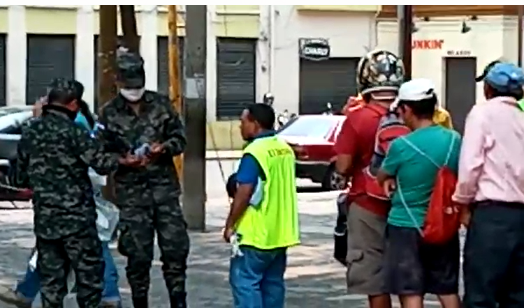 Elementos de Las Fuerzas Armadas de Honduras (FFAA), este día realizaron una ardua labor en la lucha contra el covid-19, como lo han venido haciendo desde el inició de esta pandemia, es así que en horas más tempranas varios miembros de esta institución regalaron mascarillas a personas vulnerables que no portaban este equipo en el centro de la capital.