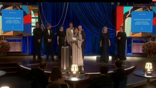Por su parte, el Oscar a Mejor Película fue para ‘Nomadland‘, El filme dirigido por Chloé Zhao, que también ha ganado la estatuilla a Mejor Director, Zhao es la segunda mujer que gana la estatuilla en los 93 años de historia de los premios de la Academia de las Artes y las Ciencias Cinematográficas.