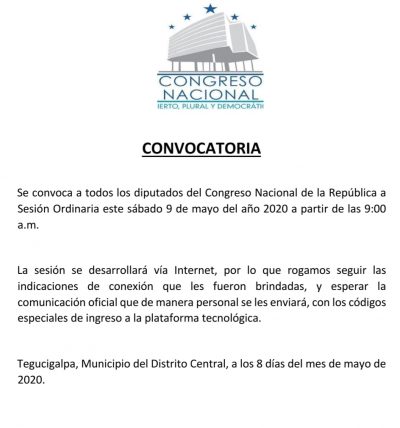 TEGUCIGALPA, HONDURAS. El presidente del Congreso Nacional convocó a una sesión ordinaria para el sábado 8 de mayo del presente año, con el propósito de discutir ampliamente en el pleno de diputados una nueva ampliación de la Vacatio Legis del nuevo Código Penal que entraría en vigencia el próximo 10 de mayo.