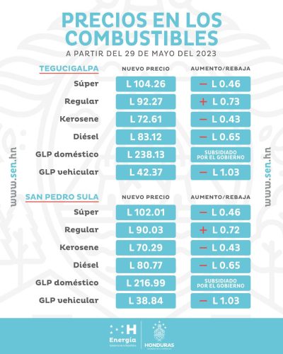 Mientras que el queroseno experimentará una disminución de 43 centavos, siendo su nuevo costo de 72.61 lempiras.