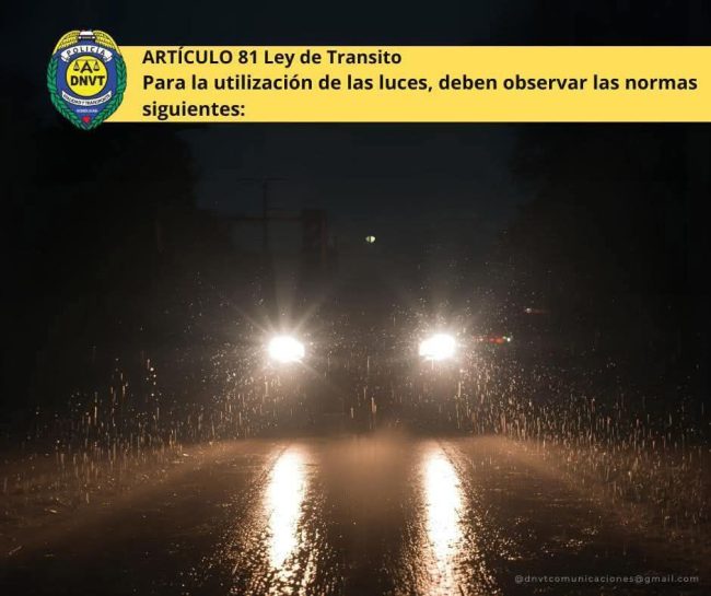 Según el artículo 81 de la Ley de tránsito, las luces de un auto se deben encender desde media hora antes, de la hora natural del anochecer, y hasta media hora después de la hora natural del amanecer, se prohíbe la circulación de los vehículos, sin las luces reglamentarias encendidas.