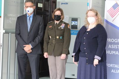 Como parte de la cooperación del Gobierno de los Estados Unidos, el Comando Sur, hace entrega de 18 equipos de ultra baja temperatura para almacenar vacuna contra la Covid-19, de la casa farmacéutica de Pfizer.