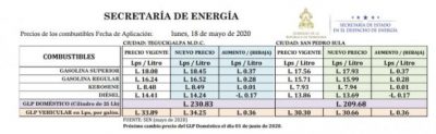 TEGUCIGALPA, HONDURAS. La Secretaría de Energía, a través de Dirección General de Hidrocarburos y Biocombustibles, oficializó la estructura de precios que estará vigente a partir del próximo lunes.