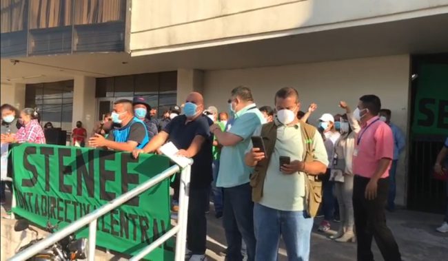 Este día, el Sindicato de trabajadores de la Empresa Nacional de Energía Eléctrica (STENEE) realizan protesta en los bajos de la central estatal en la capital.