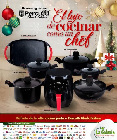 Supermercados La Colonia trae a sus clientes las más increíbles promociones de impacto con productos exclusivos y de la más alta calidad, con el lanzamiento de la fabulosa promoción ¨El lujo de cocinar como un chef”, que sorprende con 7 espectaculares piezas de alta cocina con versátiles diseños con un elegante tono negro.