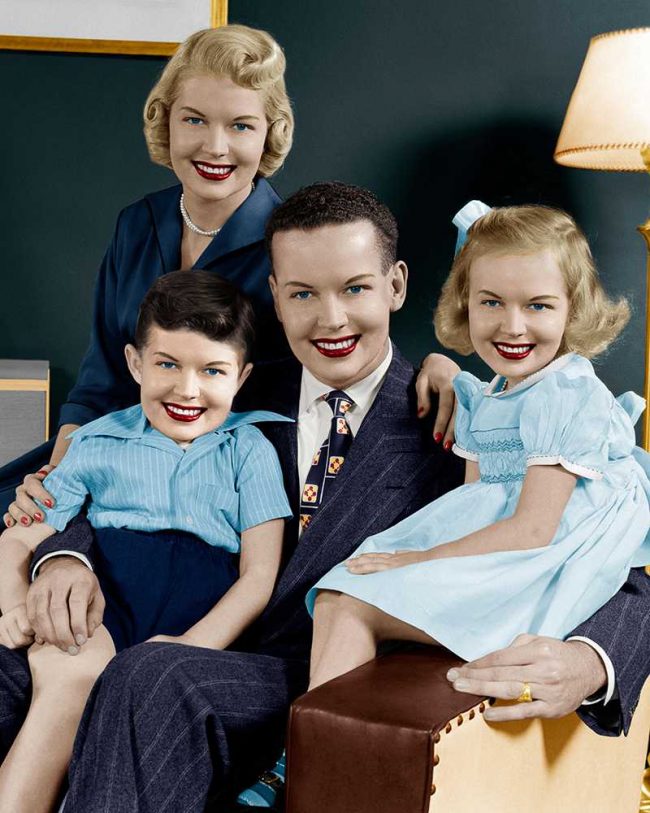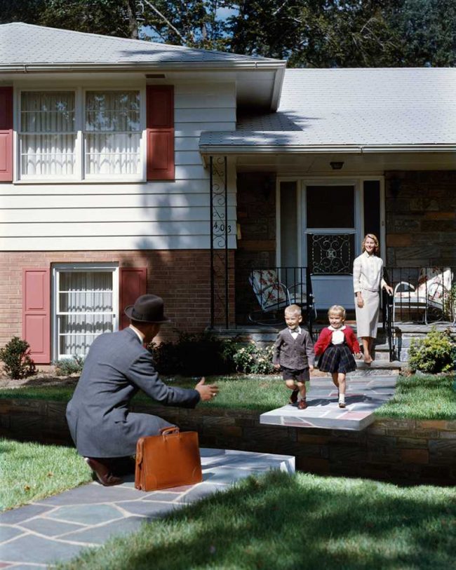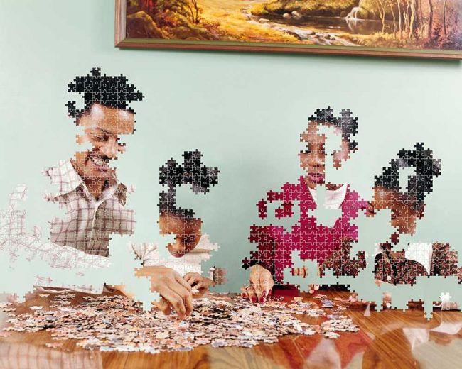 Para su serie ‘Traces’ utiliza Photoshop para alterar digitalmente las escenas domésticas escenificadas de familias sonrientes, con casas suburbanas y jardines bien cuidados; los recuerdos de vacaciones y recuerdos perdidos hace mucho tiempo. De esta manera explorando el realismo detrás de la imagen ideal del Sueño Americano.