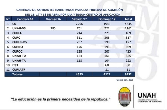 Tegucigalpa, Honduras. La Universidad Nacional Autónoma de Honduras (UNAH)  realizará la Prueba de Actitud Académica (PAA)  del 17 al 18 de abril a nivel nacional.