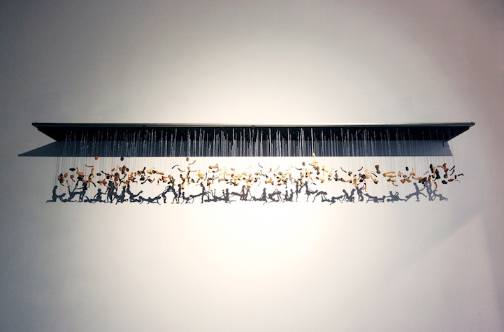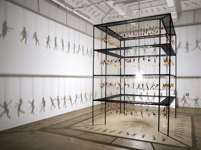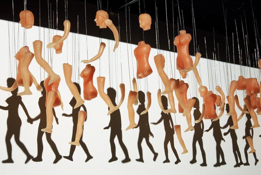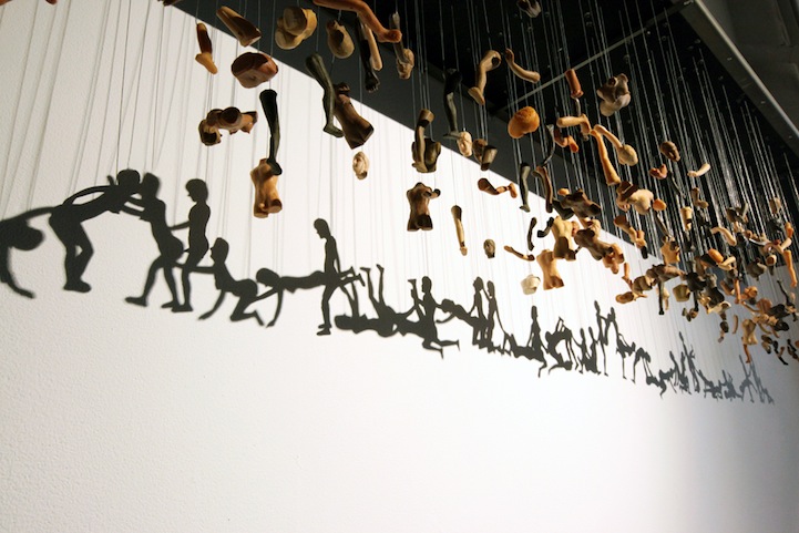 ‘Unity’ (Unidad) es una instalación de arte suspendida del artista coreano Bohyun Yoon. Quien toma piezas fragmentadas de muñecas y las transforma en una línea de personas en poses sugerentes. Las numerosas piezas de caucho desmembradas flotan de forma abstracta en el aire, colgando de sus propios hilos de cuerda; las partes del cuerpo por si solas crean un ambiente algo perturbador, pero las sombras transforman la pieza en algo mucho más provocativo y significativo. Revelan una imagen completamente diferente una vez que la luz proyectada por el foco metódicamente colocado de Yoon se refleja y expone las posiciones comprometedoras ocultas dentro de las partes cuidadosamente compuestas. Algunos dirían que se crea una gran tension sexual en el ambiente.