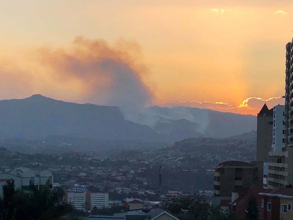 Una vistas del incendio en el cerro Upare