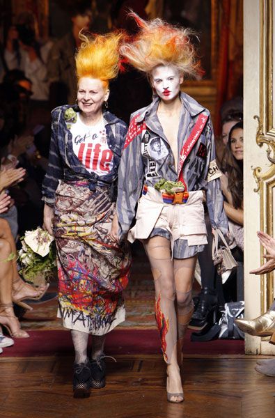 Vivienne Westwood nació el 8 de abril de 1941 en el pequeño pueblo de Tintwistle, Inglaterra. Es una de las diseñadoras de moda más importantes del Reino Unido y una de las creadoras de la estética punk. Es además una de las diseñadoras más reivindicativas, participando activamente en protestas por los derechos civiles, la ecología o la política.