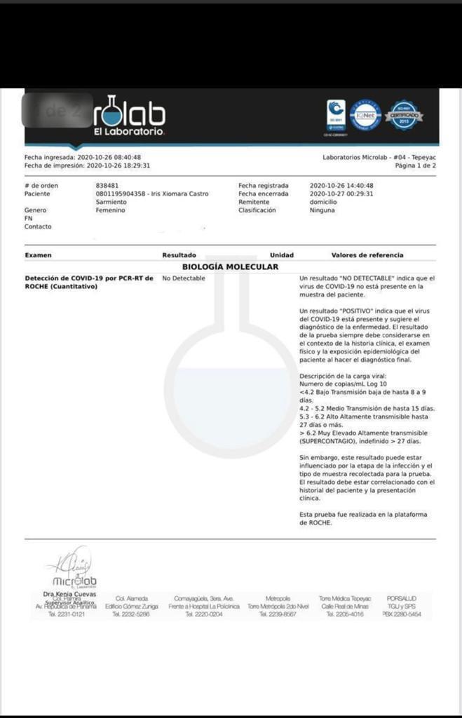 El exmandatario también informó que Xiomara Castro ya fue atendida por un equipo especializado que se presentó hasta su vivienda para realizarle la prueba de covid-19.